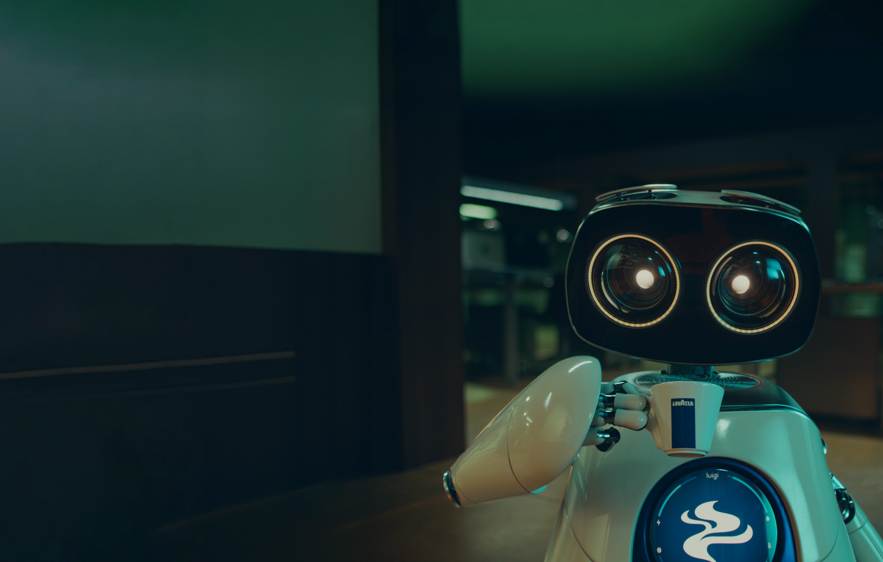 Luigi je roztomilý kancelářský stroj na přípravu kávy, který je každý den svědkem radosti ze života v Dolce Vita, přístupu a chuti, jež inspiruje celý svět. Prostřednictvím kávy Lavazza přináší potěšení svým lidským kolegům, kteří také touží ji ochutnat. Věříme, že šálek kávy je mnohem víc než jen nápoj: je to okamžik k načerpání nových sil, který sdílíme s blízkými. Je to synonymum pro potěšení. Luigiho největším snem je ochutnat naši kávu a zažít stejné potěšení, ale nemůže. Proto hraje po boku komiků a hollywoodských hvězd, XX a XX. Společně si s Luigim na pódiu užívají lahodnou přestávku na kávu Lavazza, což našemu příběhu dodává nádech humoru a vřelosti!